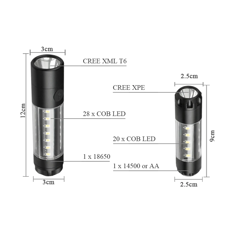 camping lamp mini led torch flashlight 18650 Rechargeable battery COB flash light usb Warning pen l